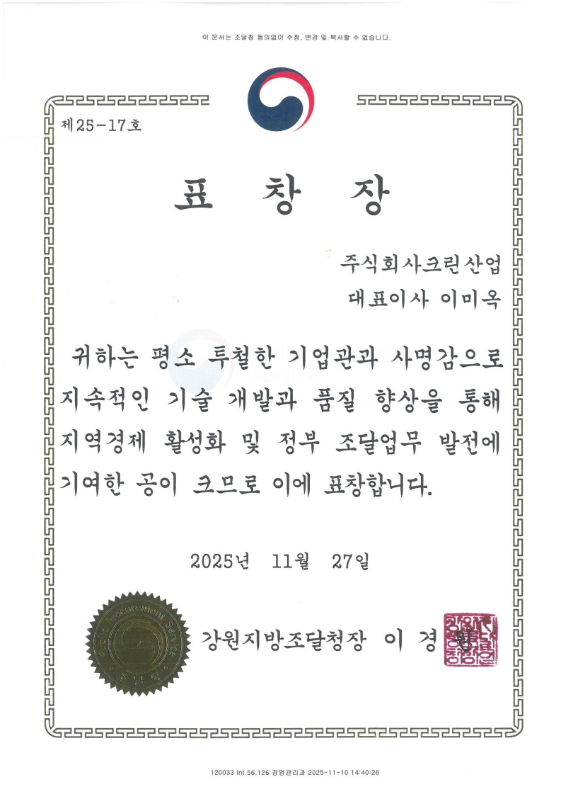 강원지방조달청장 표창