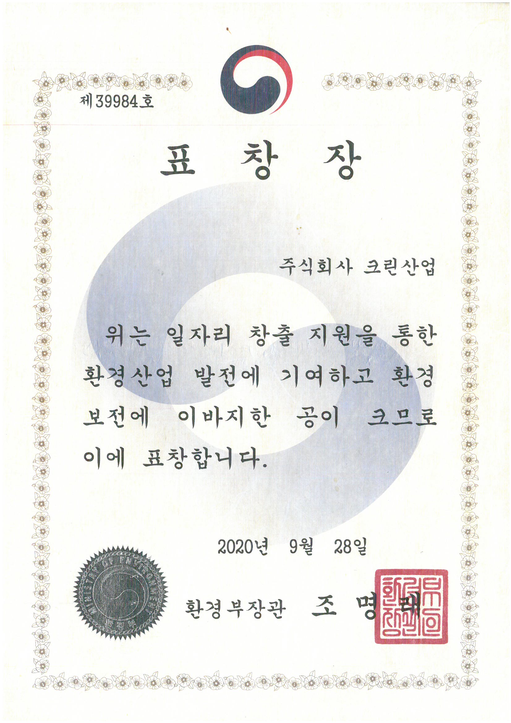 환경부장관 표창